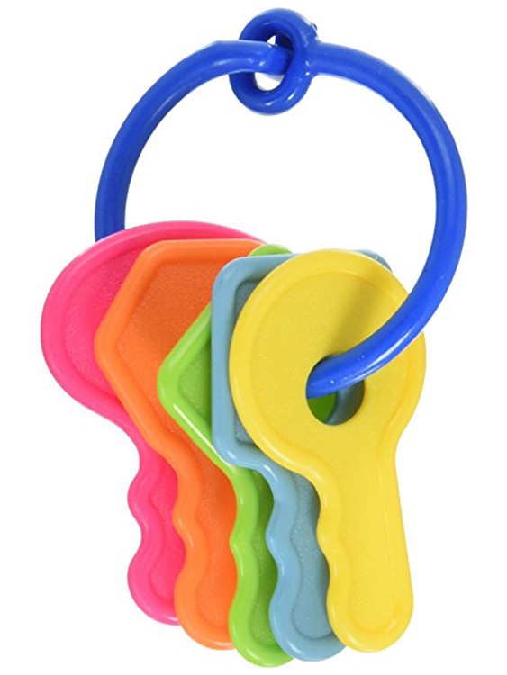 Juguete de cinco llaves de colores brillantes y cada una con una forma diferente.
